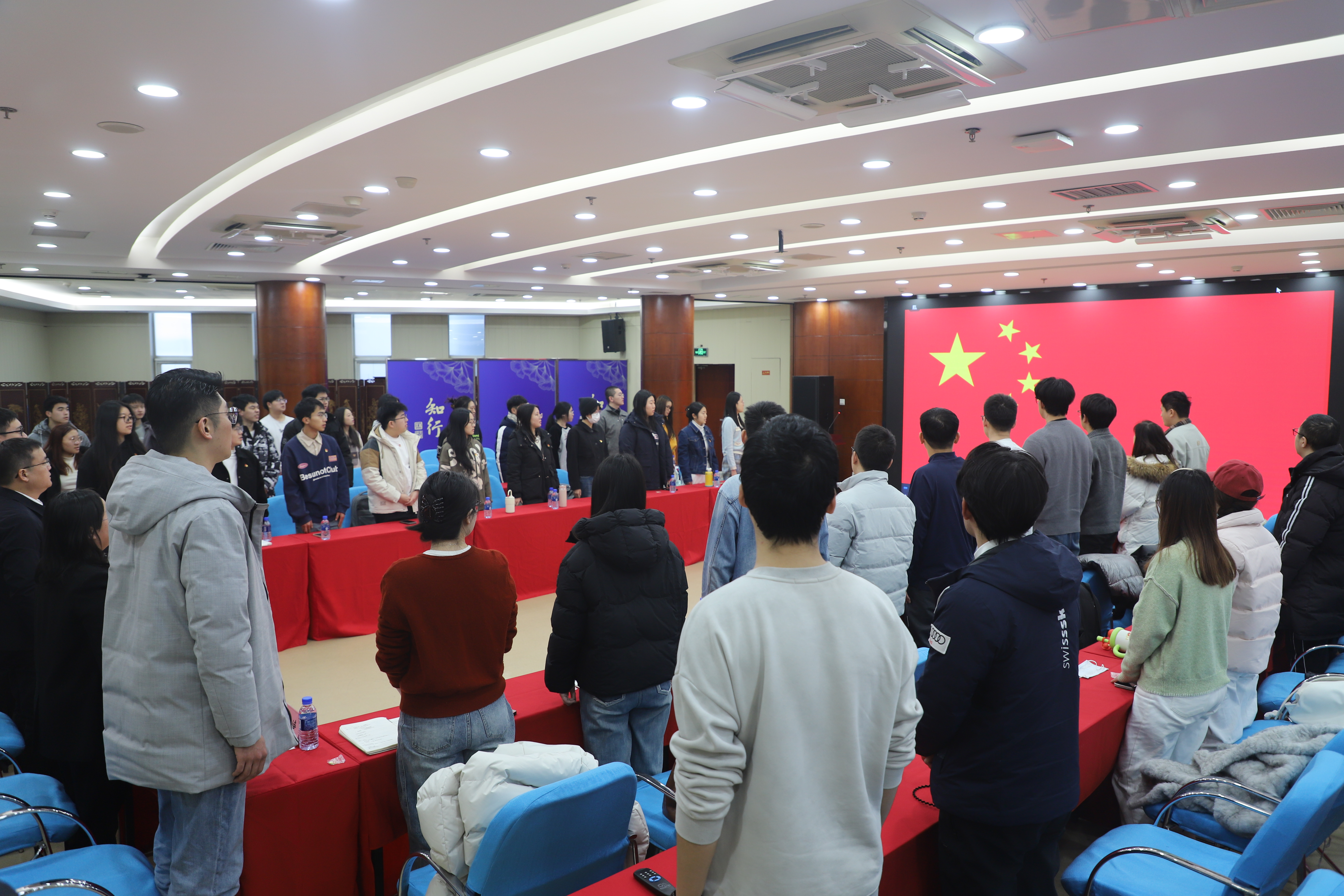 活动伊始,全体参会人员起立,奏唱中华人民共和国国歌。激昂的旋律回荡在云端,传递着全体党员不忘初心、砥砺前行的坚定信念,拉开了本次专题党课的序幕。